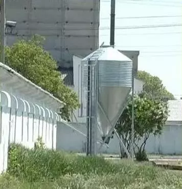 Бункер наружный из оцинкованной стали с механической загрузкой, объем - 6,5-10 м3, оборудован лестницей для обслуживания.