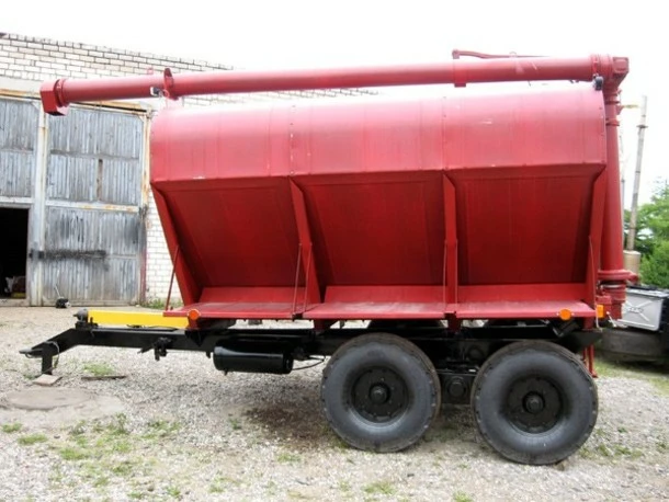 Загрузчик ЗКП-8А предназначен для внутрихозяйственной транспортировки комбикормов и выгрузки их в наружные бункеры на птицеводческих и животноводческих фермах, а также для перевозки зерна. Он агрегатируется с тракторами класса 0,9-1,4 л. с. Привод выгрузных шнеков от вала отбора мощности трактора через карданный вал, подъем и опускание выгрузного шнека осуществляется при помощи гидронасоса и поворотного устройства.